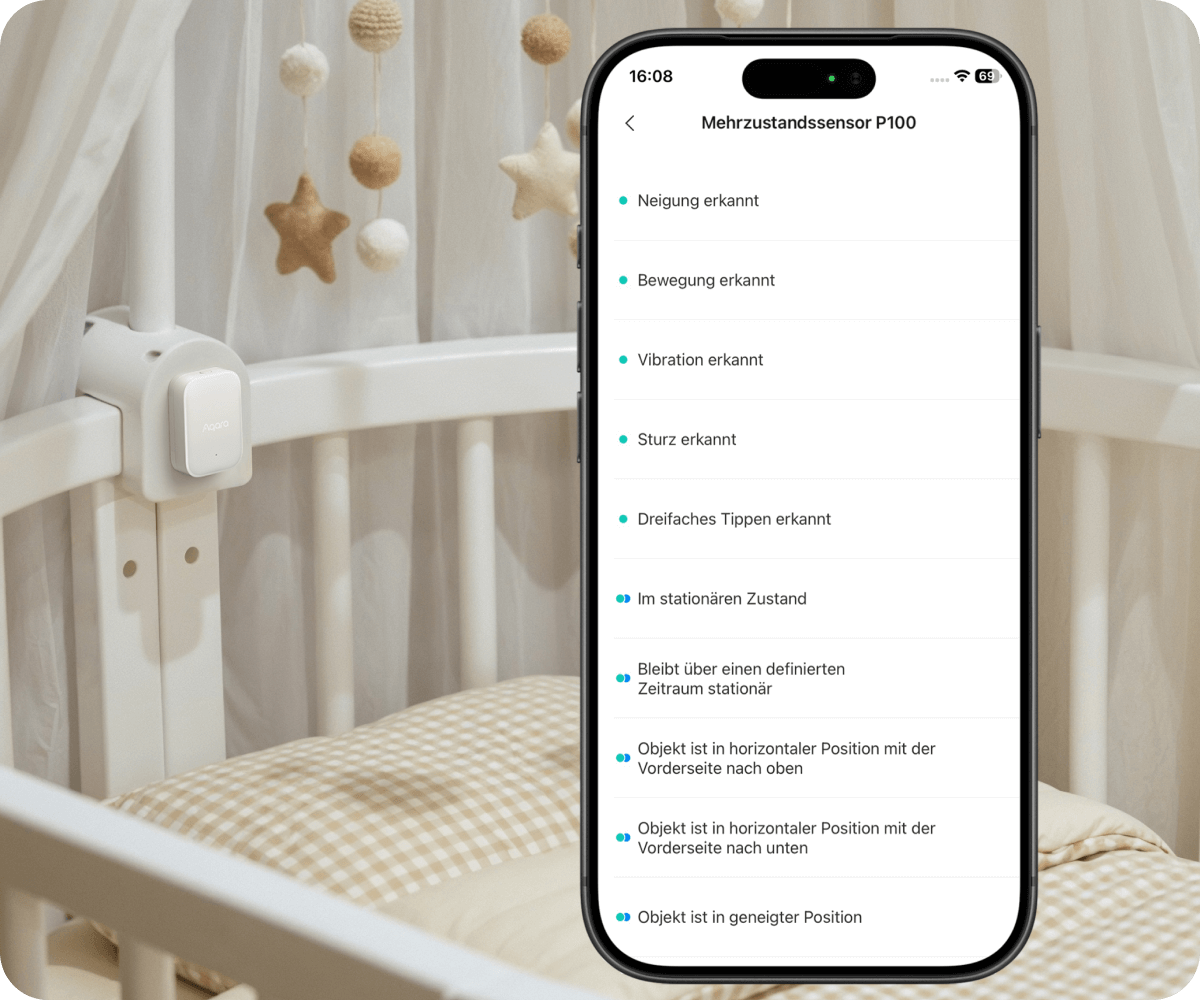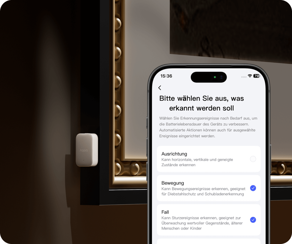 Vielfältige Ereignistypen lassen Sie genau wissen, was tatsächlich passiert, zum Beispiel geöffnet, bewegt, gekippt oder stillstehend, und ermöglichen dadurch vielseitigere Automatisierungen.
