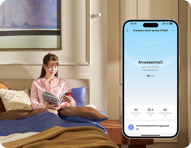 Anders als traditionelle PIR-Sensoren (Passiv-Infrarot), die nur Wärme und Bewegung erfassen, erkennt der fortschrittliche mmWave-Radar-Sensor des FP300 präzise die Anwesenheit von Personen – selbst ohne Bewegung – und wird weder von jahreszeitlichen noch von Raumtemperaturschwankungen beeinflusst.
