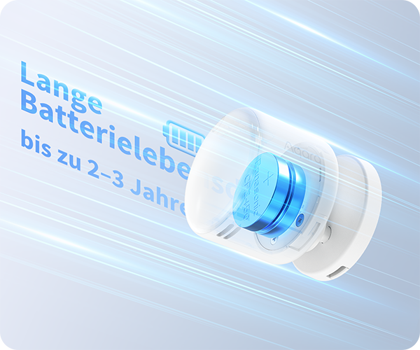 FP300-Sensor wird von zwei austauschbaren CR2450-Batterien angetrieben und bietet eine zuverlässige Leistung von bis zu 3 Jahren im Zigbee-Modus und bis zu 2 Jahren im Thread-Modus*, wodurch das ständige Nachladen überflüssig wird.