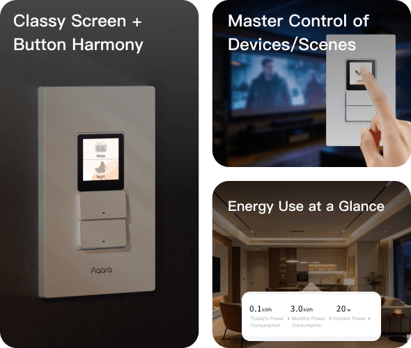 Straightforward execution of scenes via screen upon entry/exit, no need to pull out a phone or complex automation.