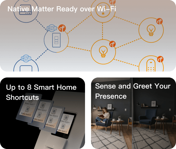 8 on-screen wireless buttons become extra flexible triggers, powering richer scenes and automations with instant visual feedback.