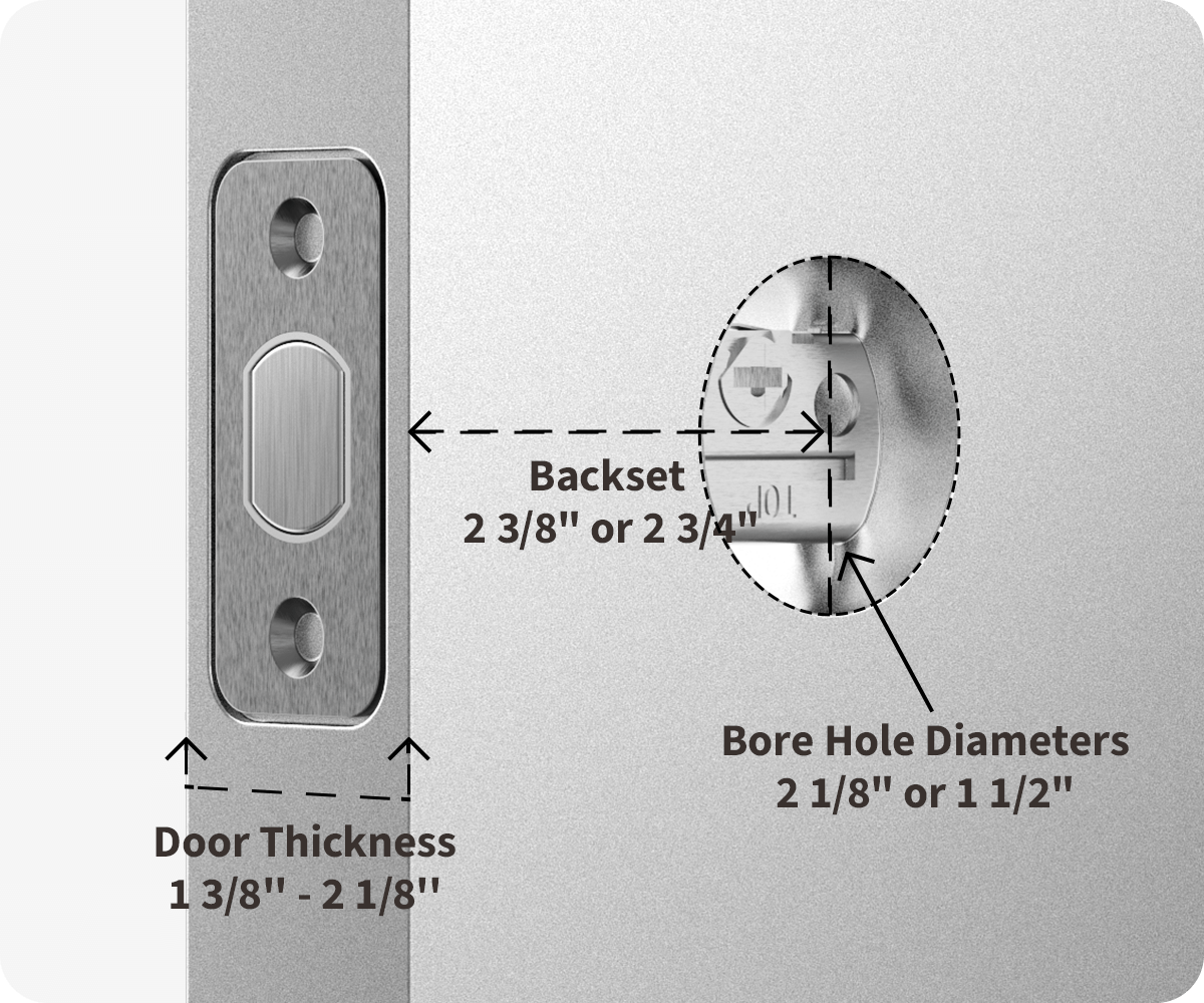 •  Backset: 2 3/8" (60 mm) or 2 3/4" (70 mm)