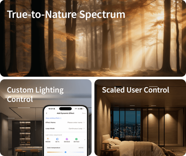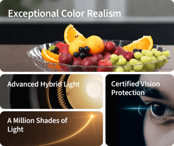 An advanced lighting solution, this system combines advanced light-mixing patterns with spiral microstructures to ensure uniform lighting and superior anti-glare performance, whether in single-color or dual-color temperature modes.