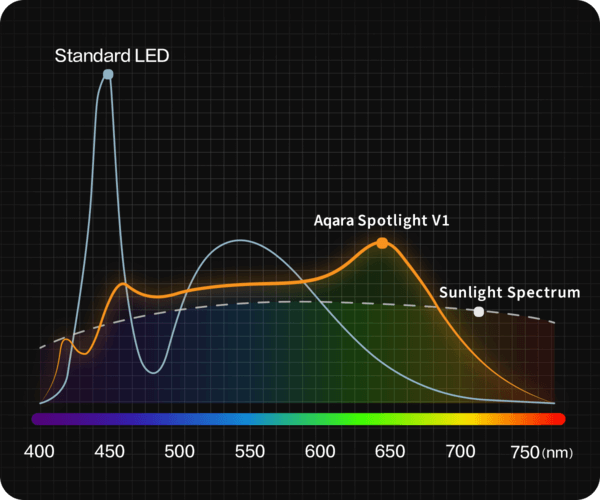 Aqara Spotlight V1 replicates sunlight with a continuous spectrum, delivering true colors and exceptional visual comfort, bringing the vibrancy of sunlight indoors.