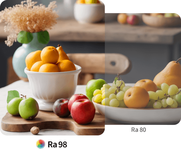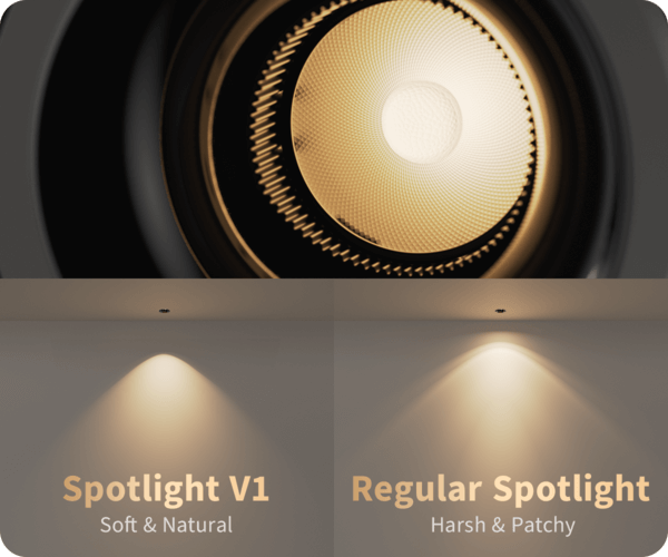 With a high CRI of Ra98, Spotlight V1 delivers vivid, accurate colors that appear natural and true to life under everyday lighting.