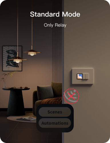 Straightforward execution of scenes via screen upon entry/exit, no need to pull out a phone or complex automation.