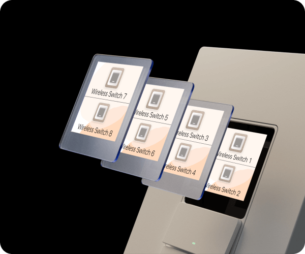 8 on-screen wireless buttons become extra flexible triggers, powering richer scenes and automations with instant visual feedback.