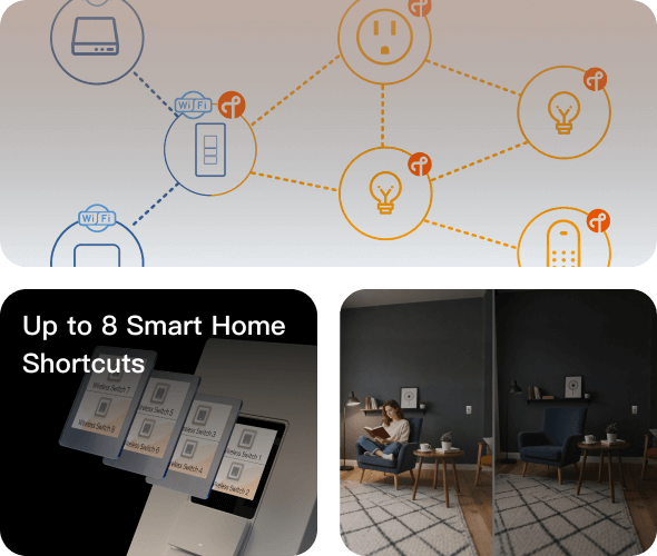 A physical button you can trust, plus 3 remappable button modes and a customizable display layout, all in one smart wall command center.